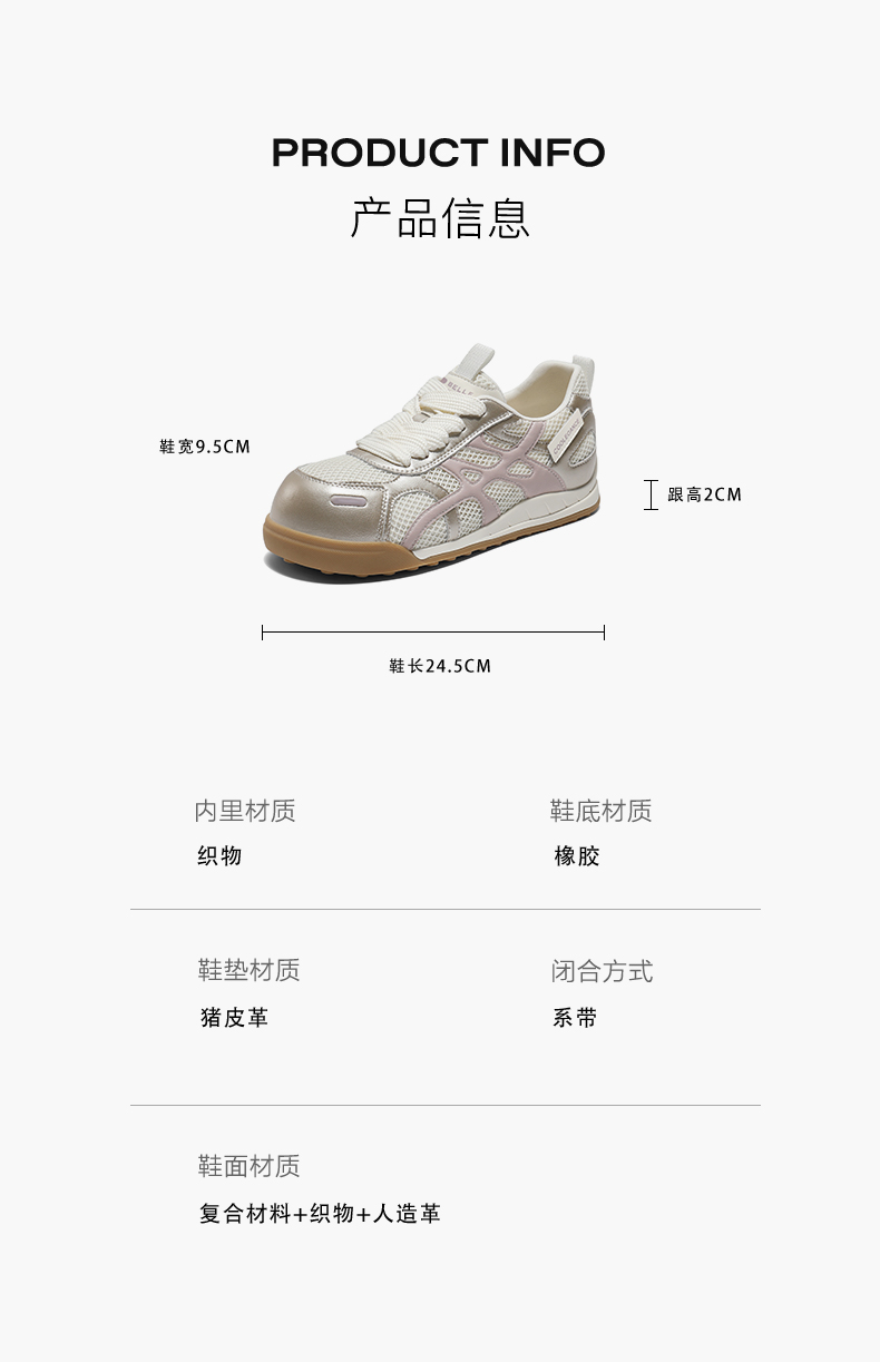 | 鞋跟形状:平跟 | 参考鞋长(女):24.5CM | 流行元素:撞色 | 参考鞋宽(女):9.5CM | 风格:休闲 |