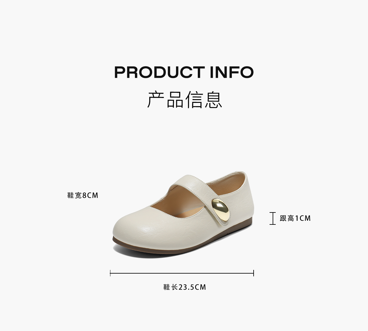| 风格:复古 | 跟高数值:1CM | 色系:米白 | 配跟:无 | 性别:女子 |