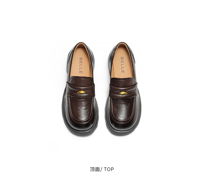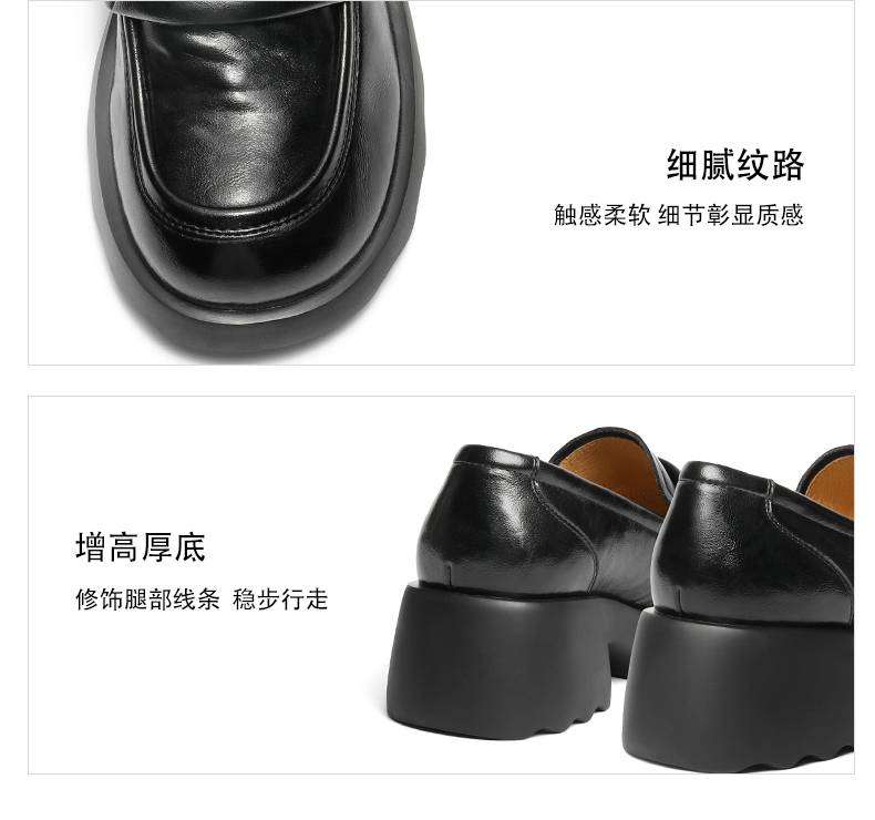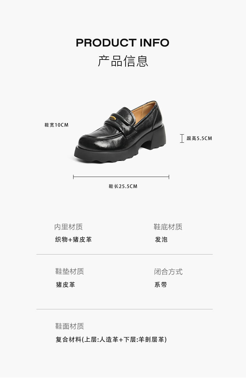 | 上市时间:2025年秋季 | 鞋类流行款式:乐福鞋 | 鞋头款式:圆头 | 鞋面图案:纯色 | 鞋跟形状:粗跟 |
