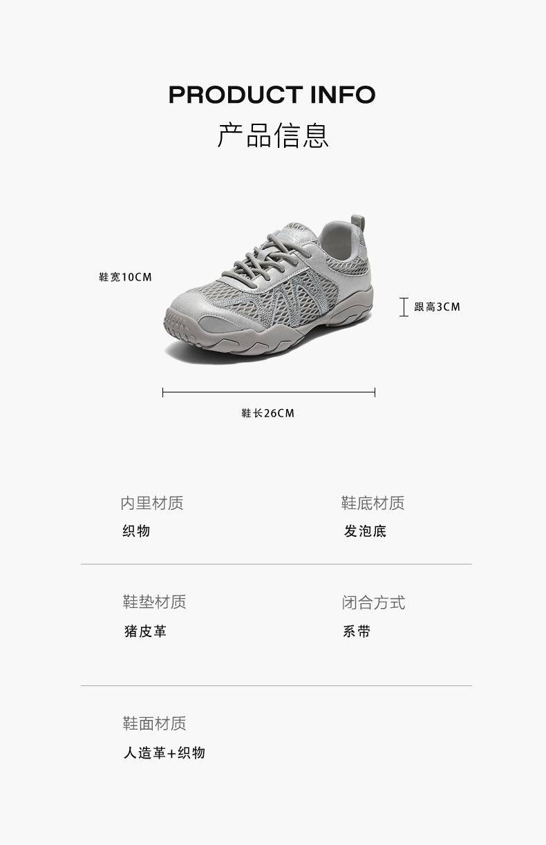| 鞋面内里材质:织物 | 色系:灰色 | 跟高数值:5CM | 性别:女子 | 里料材质:织物 |