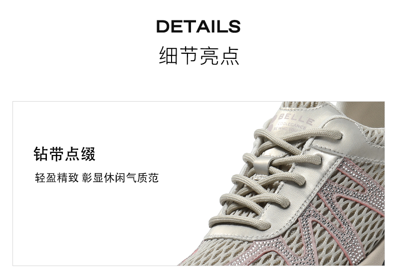 BeLLE(百丽),百变所以美丽。主张多变多元的新生代态度,不断融合潮流趋势,拥抱不同的生活体验与生活经历。将女性的百变魅力注入到鞋履设计中,让女人在不同的人生阶段,不同的场合,不同的潮流趋势下,尽显自己自信的一面。致力于为现代都市女性提供充满自由的行走体验。