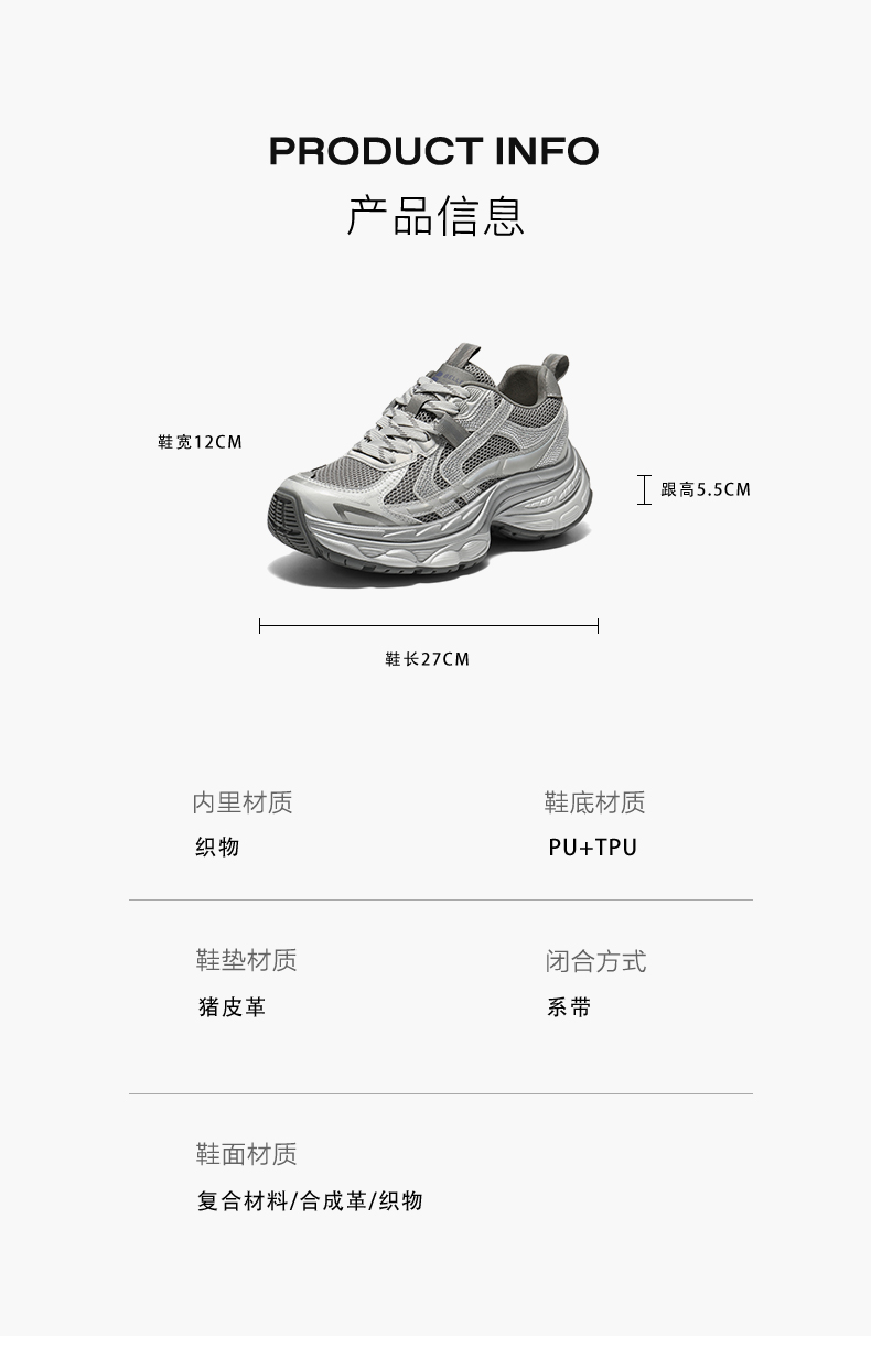 | 配跟:无 | 上市时间:2025年秋季 | 鞋类流行款式:老爹鞋 | 鞋头款式:圆头 | 鞋面图案:拼色 |