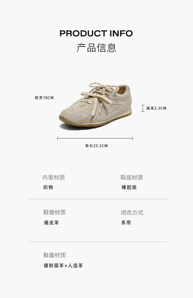 | 鞋帮:低帮 | 鞋底材质:橡胶底 | 内增高:无 | 鞋面材质:人造革猪剖层革 | 闭合方式:系带 |