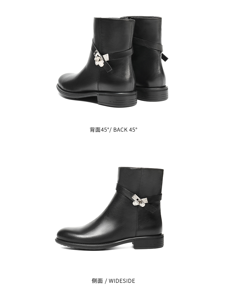 | 鞋底材质:橡胶底 | 靴筒内里材质:猪皮革织物 | 内增高:无 | 鞋面材质:牛皮革 | 闭合方式:侧拉链 |