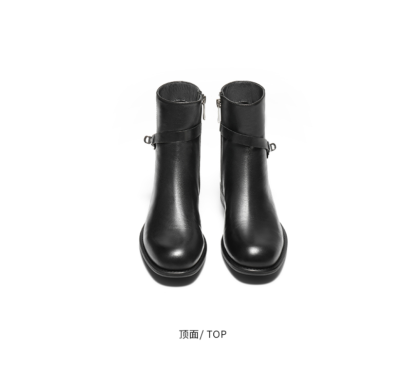 | 鞋底材质:橡胶底 | 靴筒内里材质:猪皮革织物 | 内增高:无 | 鞋面材质:牛皮革 | 闭合方式:侧拉链 |