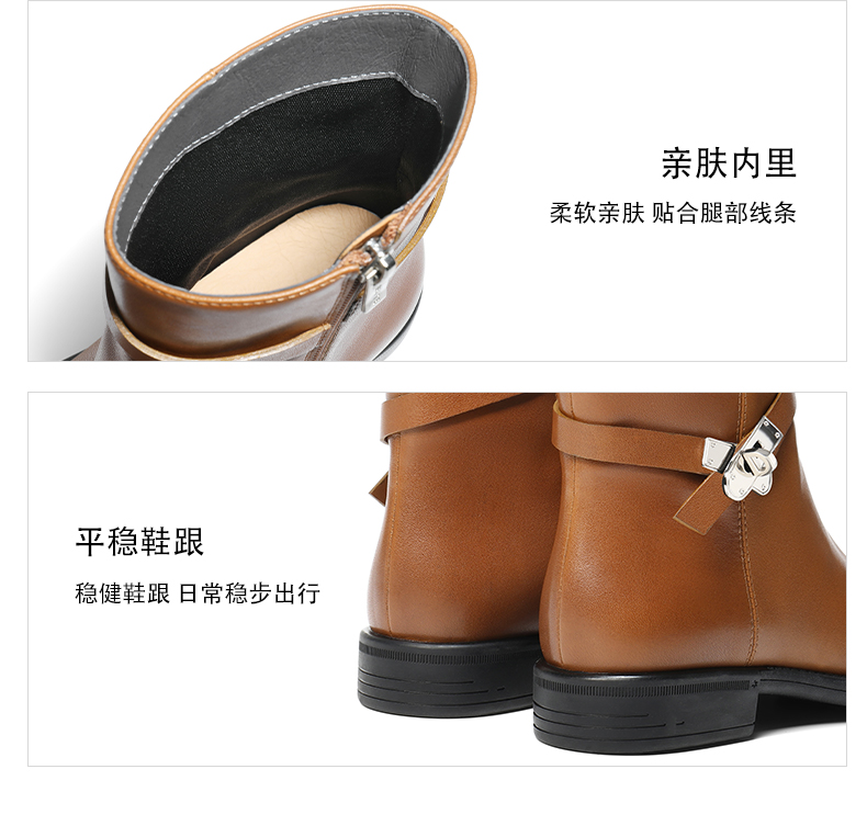 | 帮面材质:牛皮革 | 配跟:无 | 靴筒口围:26CM | 上市时间:2025年冬季 | 鞋类流行款式:时装靴 |