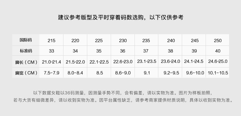 | 鞋面图案:纯色 | 鞋跟形状:厚底 | 参考鞋长(女):26CM | 流行元素:纯色 | 参考鞋宽(女):10CM |