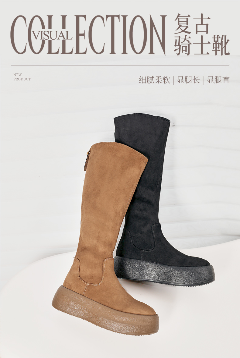 | 风格:休闲 | 鞋面内里材质:织物 | 色系:卡其 | 跟高数值:5CM | 筒高数值:24CM |
