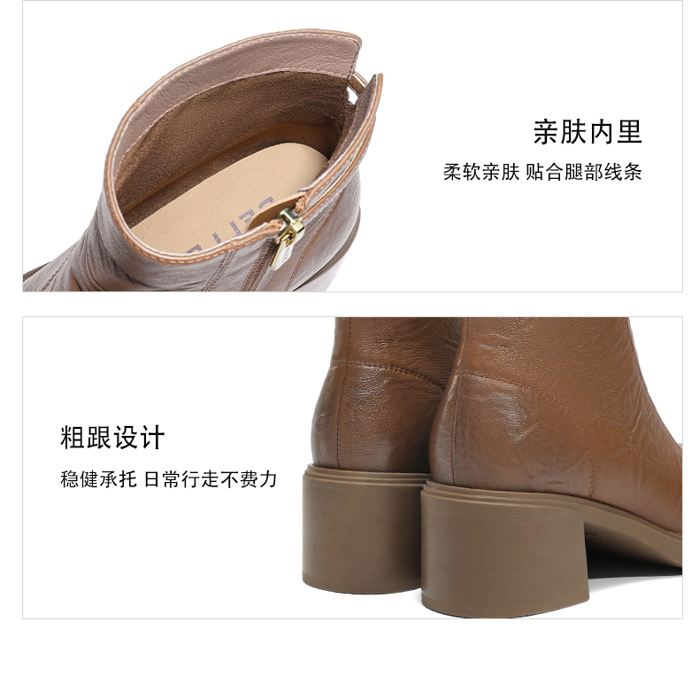| 筒高数值:12CM | 性别:女子 | 靴筒筒面材质:羊皮革 | 里料材质:织物猪皮革 | 制鞋工艺:车线胶粘 |