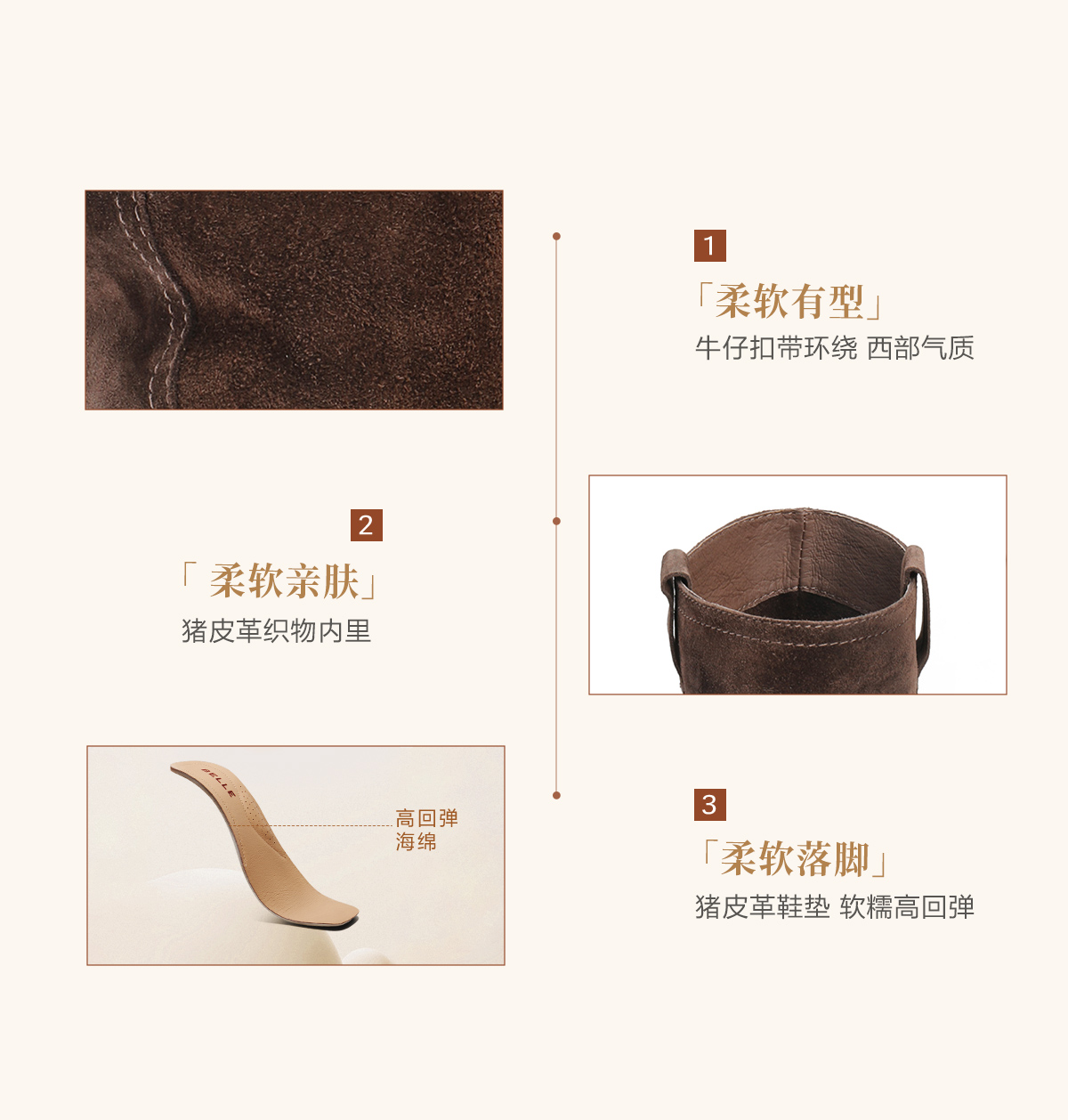 | 性别:女子 | 靴筒筒面材质:牛剖层革 | 里料材质:人造毛猪皮革 | 制鞋工艺:车线胶粘 | 鞋垫材质:人造毛 |