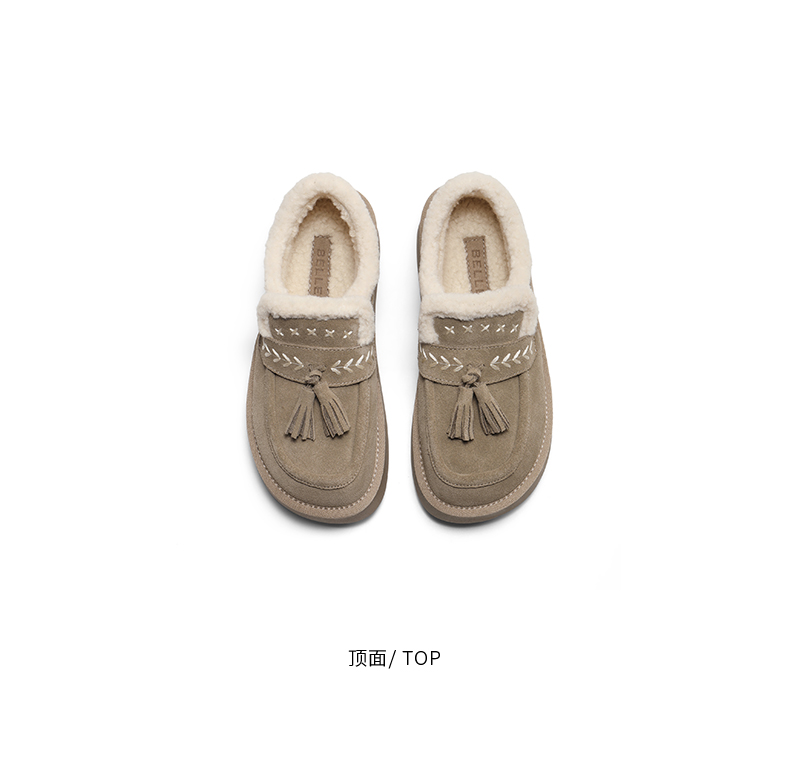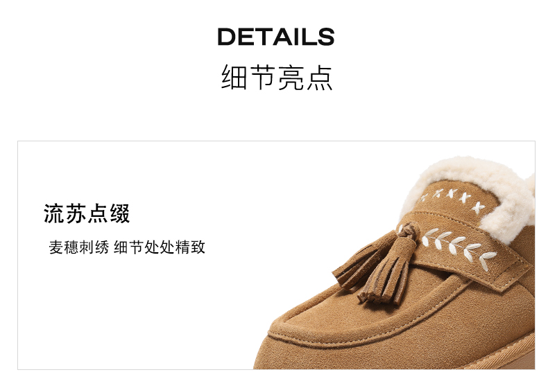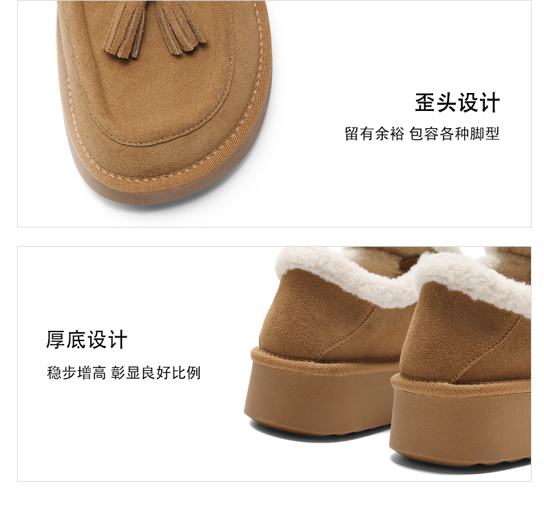 | 风格:休闲 | 鞋面内里材质:人造毛绒 | 色系:棕色 | 跟高数值:4CM | 适用人群:通用 |