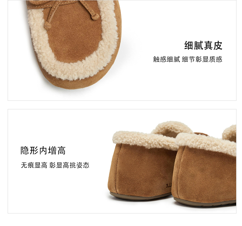 | 鞋帮:低帮 | 鞋底材质:橡胶底 | 靴筒内里材质:人造毛 | 内增高:无 | 鞋面材质:织物牛剖层革 |