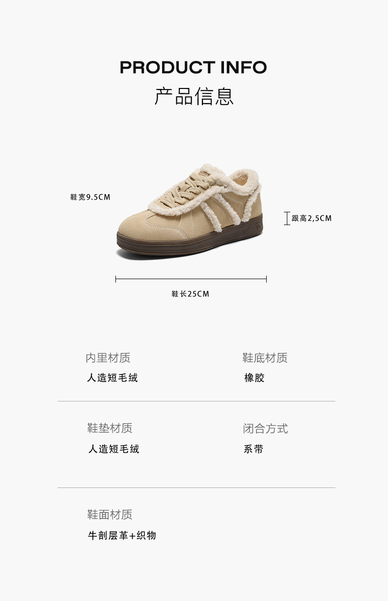 | 配跟:无 | 上市时间:2025年冬季 | 鞋类流行款式:休闲鞋 | 鞋头款式:圆头 | 鞋面图案:纯色 |