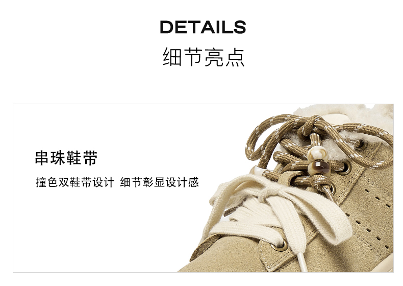 | 靴筒筒面材质:牛剖层革 | 里料材质:人造短毛绒 | 制鞋工艺:车线胶粘 | 鞋垫材质:人造短毛绒 | 款式季节:冬季 |
