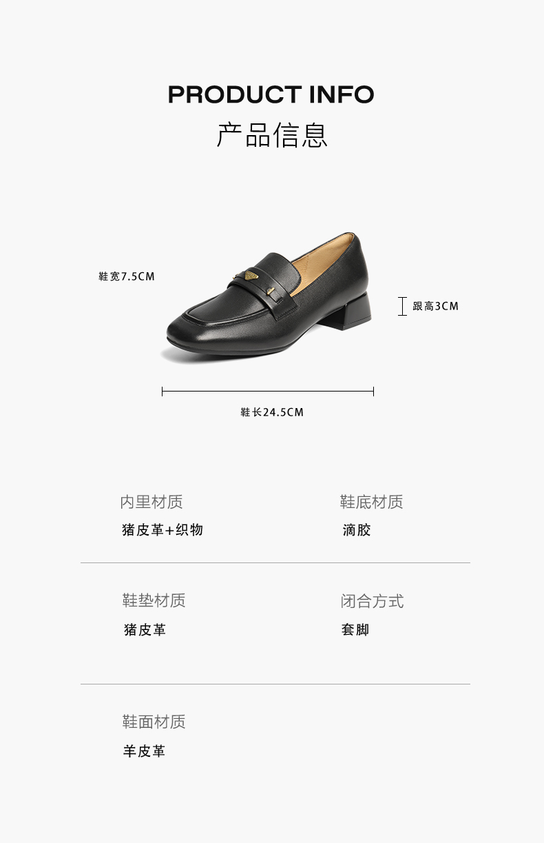 | 配跟:无 | 上市时间:2025年秋季 | 鞋类流行款式:乐福鞋 | 鞋头款式:方头 | 鞋面图案:纯色 |