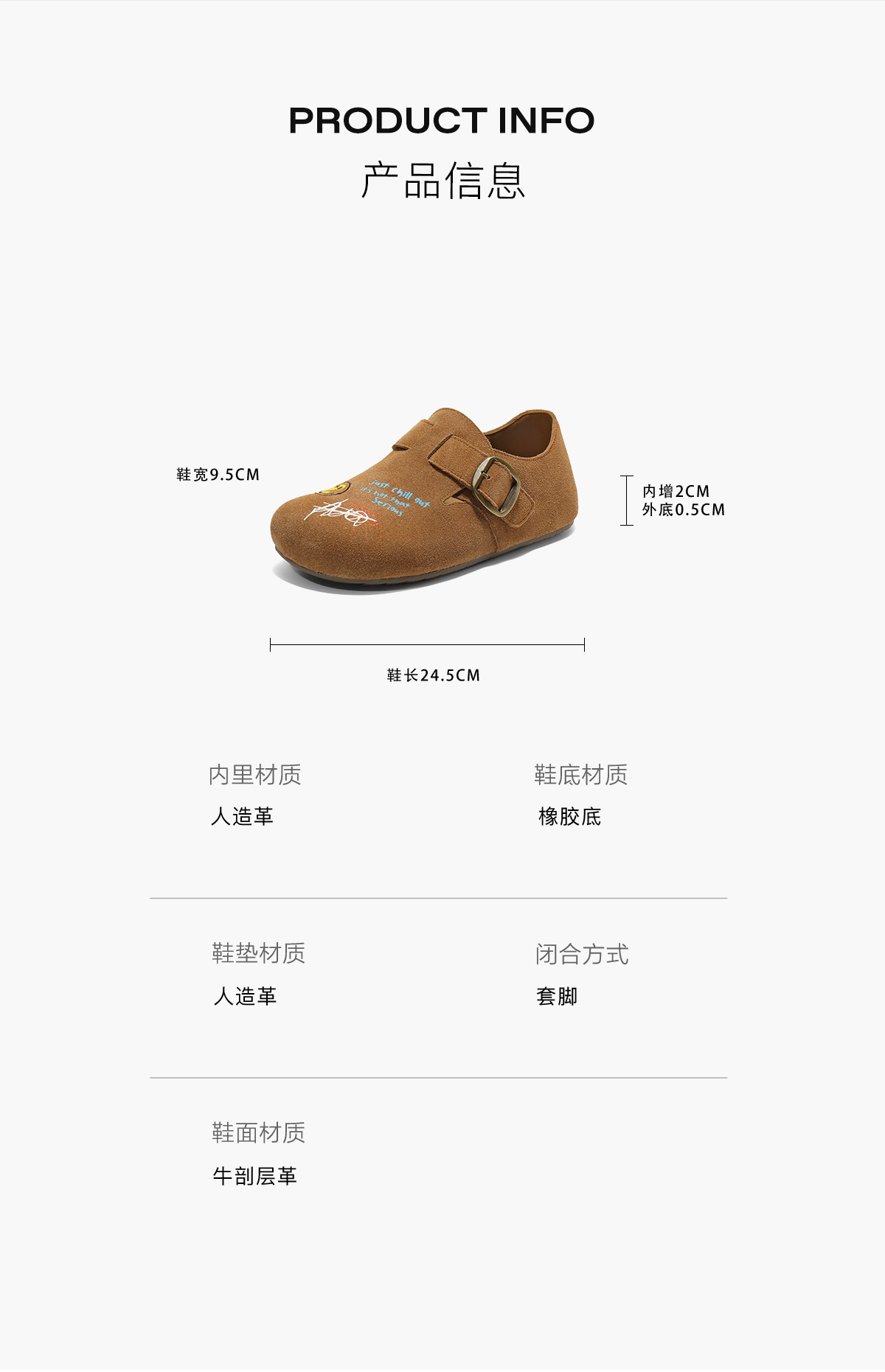 | 鞋帮:低帮 | 鞋底材质:橡胶底 | 内增高:2CM | 鞋面材质:牛剖层革 | 闭合方式:针扣 |
