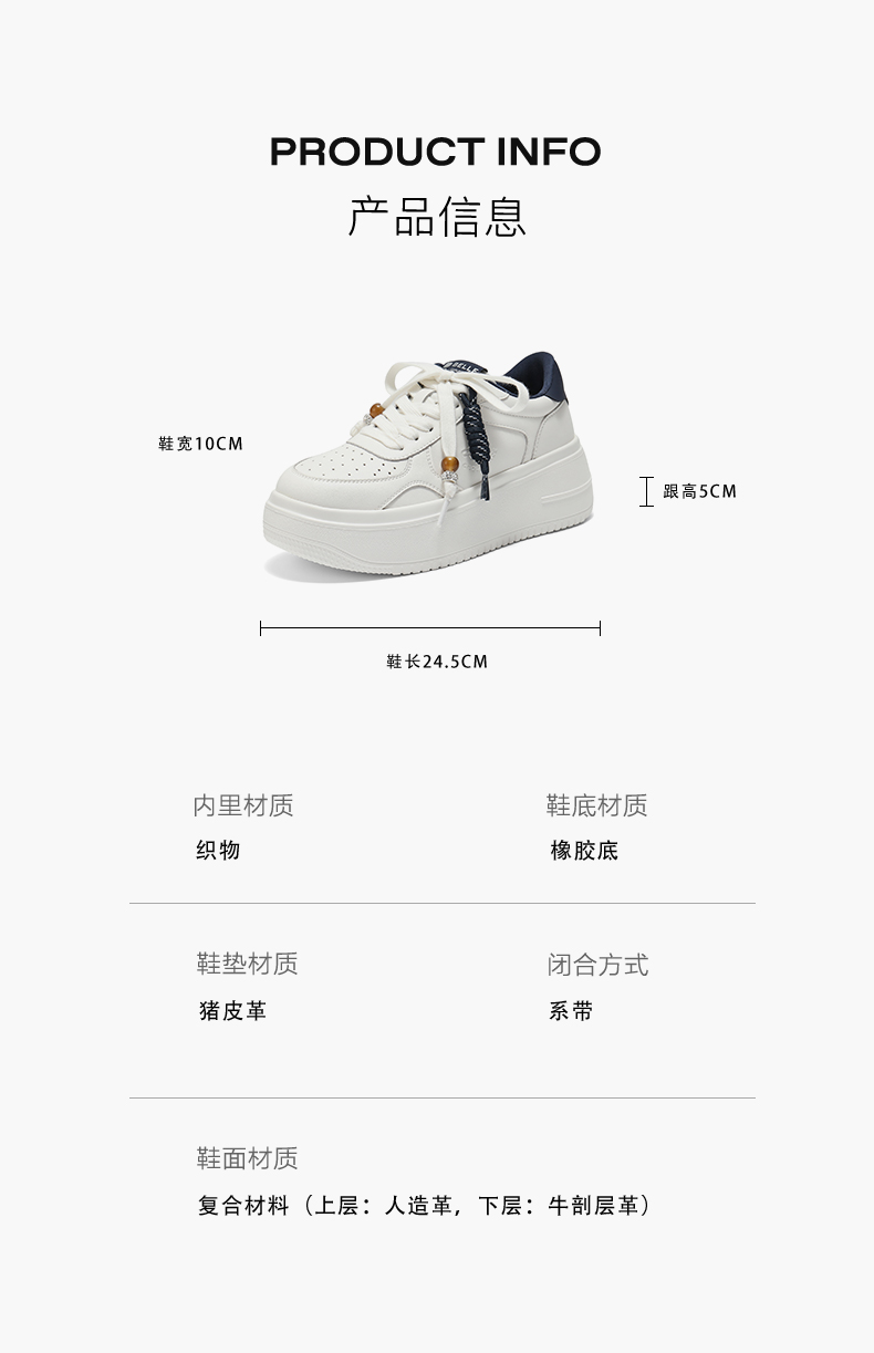 | 配跟:无 | 上市时间:2025年秋季 | 鞋类流行款式:小白鞋 | 鞋头款式:圆头 | 鞋面图案:纯色 |