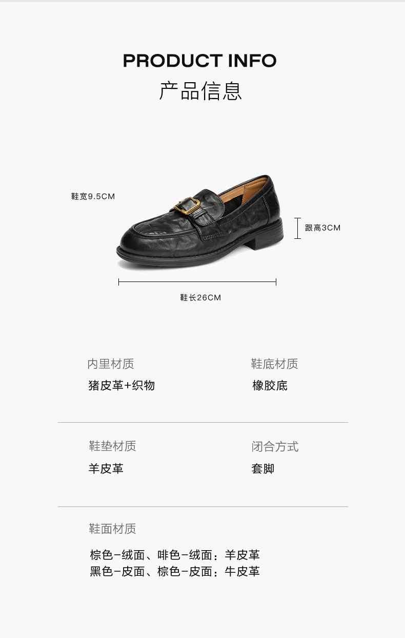 | 配跟:无 | 上市时间:2025年秋季 | 鞋类流行款式:乐福鞋 | 鞋头款式:圆头 | 鞋面图案:纯色 |