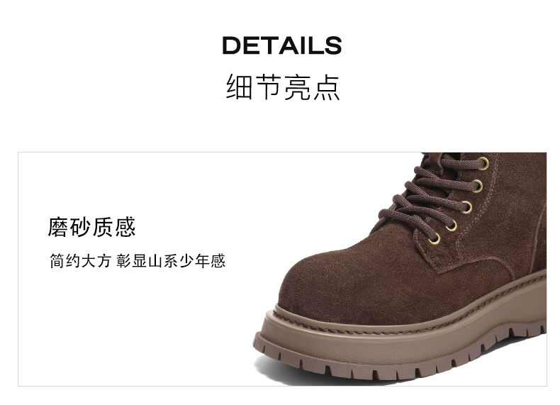| 帮面材质:牛皮革 | 配跟:无 | 靴筒口围:24CM | 上市时间:2025年冬季 | 鞋类流行款式:马丁靴 |