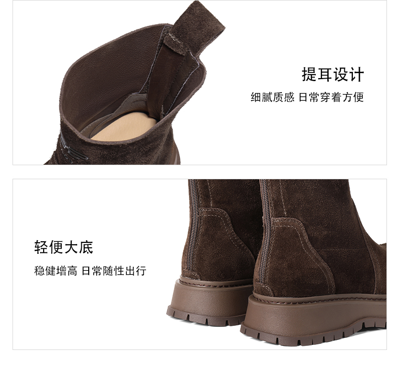 | 风格:复古休闲 | 鞋面内里材质:织物 | 色系:棕色 | 跟高数值:4CM | 筒高数值:16CM |