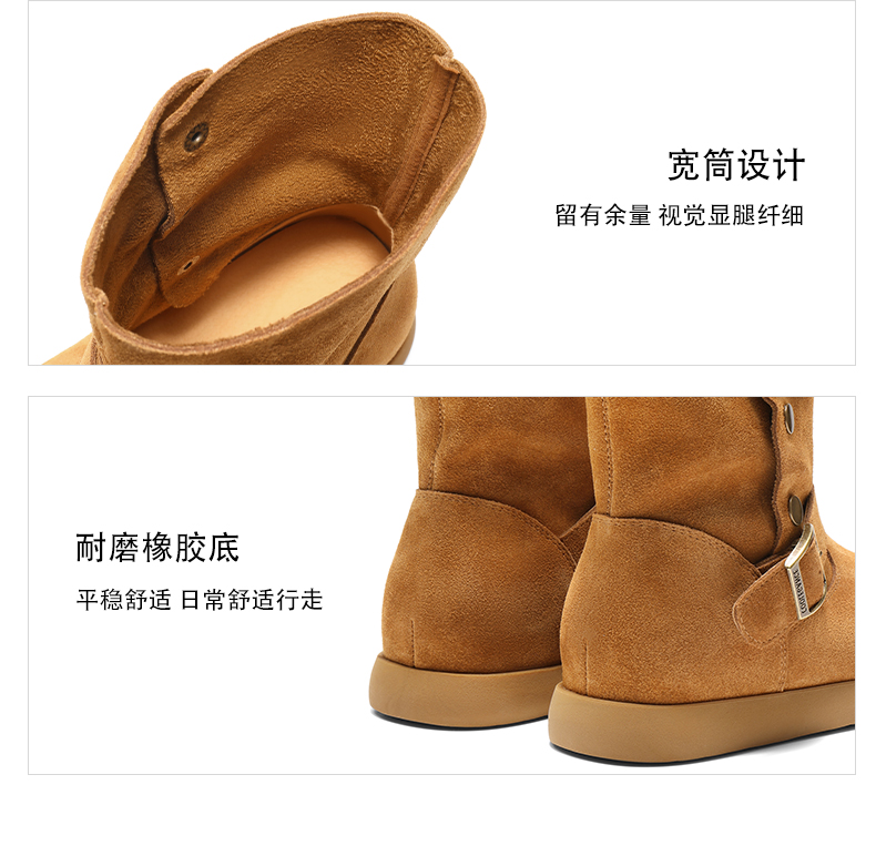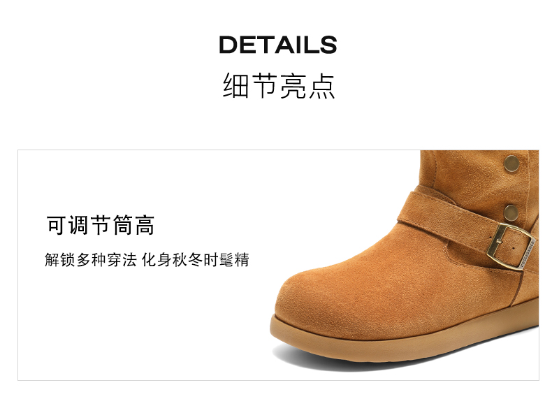 | 帮面材质:牛剖层革 | 配跟:无 | 靴筒口围:31CM | 上市时间:2025年冬季 | 鞋类流行款式:时装靴 |