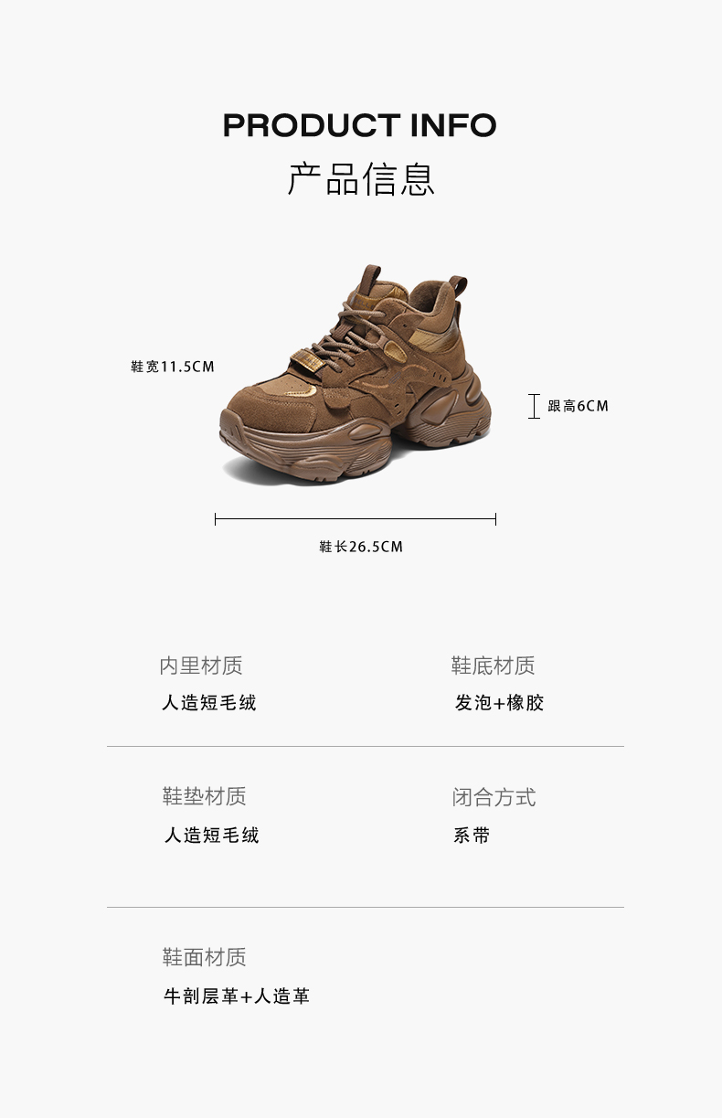 | 配跟:无 | 上市时间:2025年冬季 | 鞋类流行款式:老爹鞋 | 鞋头款式:圆头 | 鞋面图案:纯色 |