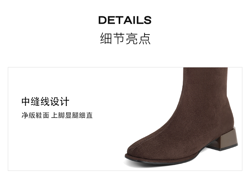 | 配跟:无 | 靴筒口围:38CM | 上市时间:2025年冬季 | 鞋类流行款式:弹力靴 | 鞋头款式:方头 |