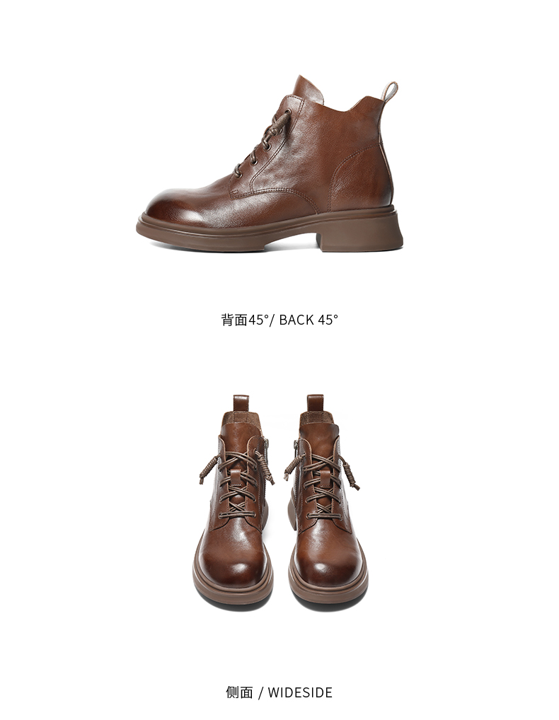 | 鞋底材质:橡胶底 | 靴筒内里材质:猪皮革织物 | 内增高:无 | 鞋面材质:牛皮革 | 闭合方式:系带 |