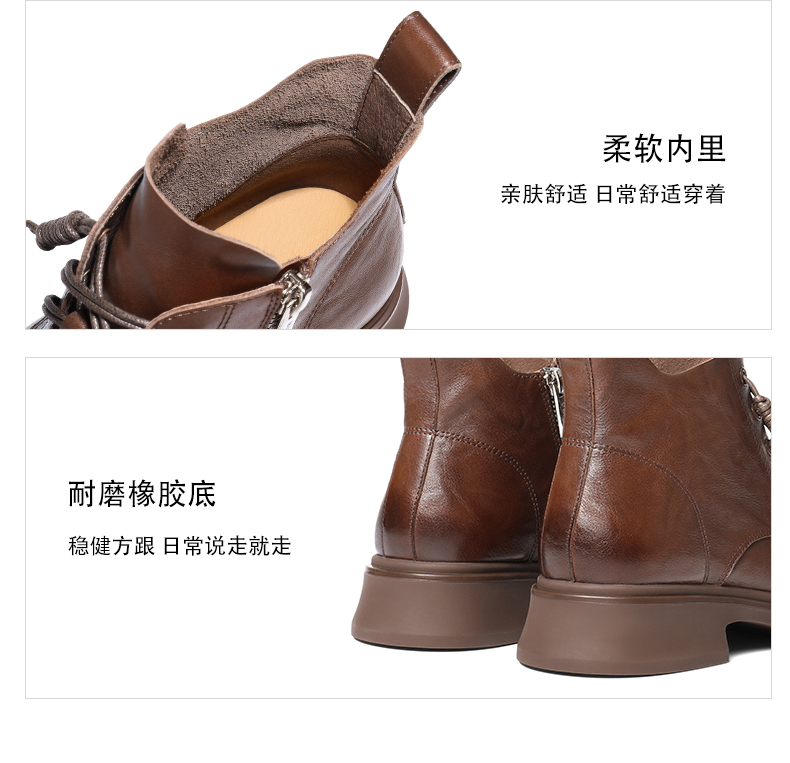| 筒高数值:10CM | 性别:女子 | 靴筒筒面材质:牛皮革 | 里料材质:猪皮革织物 | 制鞋工艺:车线胶粘 |
