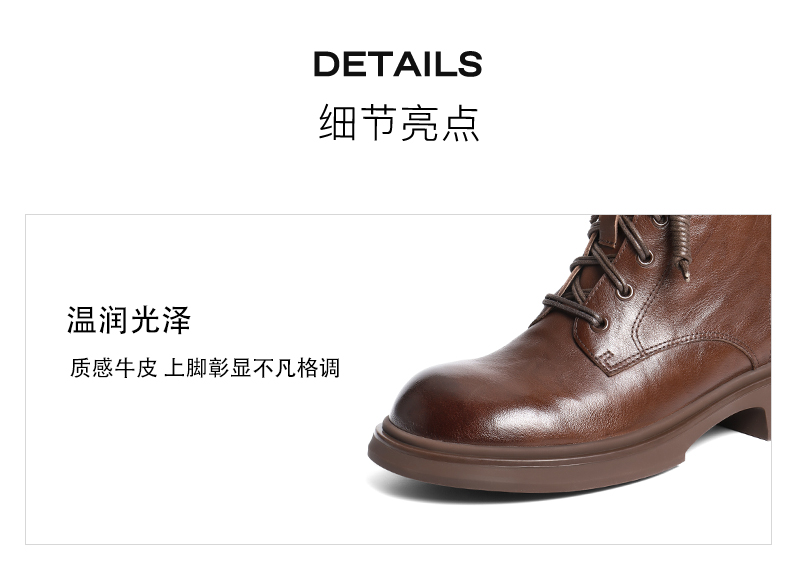 | 帮面材质:牛皮革 | 配跟:无 | 靴筒口围:25CM | 上市时间:2025年冬季 | 鞋类流行款式:马丁靴 |