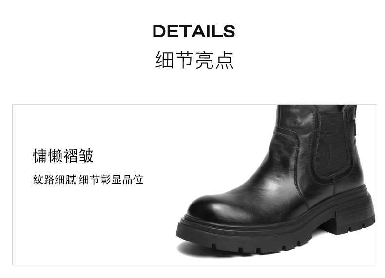 | 帮面材质:牛皮革 | 配跟:无 | 靴筒口围:27CM | 上市时间:2025年冬季 | 鞋类流行款式:切尔西靴 |