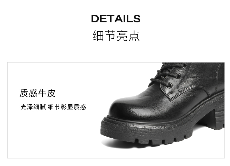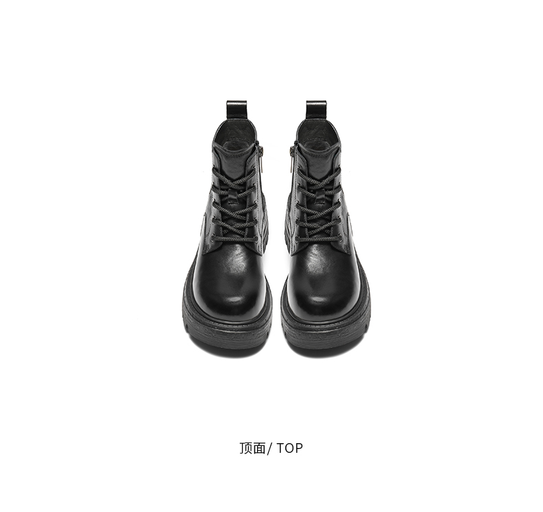 | 帮面材质:牛皮革 | 配跟:无 | 靴筒口围:25CM | 上市时间:2025年冬季 | 鞋类流行款式:马丁靴 |