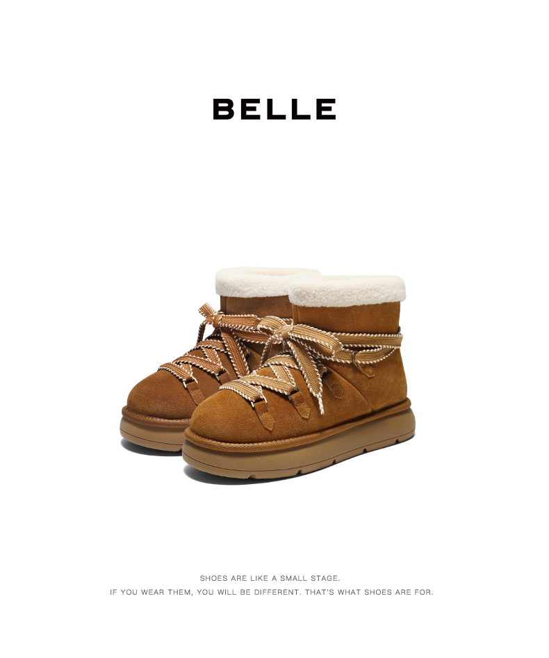 • 百丽复古时尚鞋面绑带雪地靴女2025冬新舒适保暖休闲短靴B2949DD5