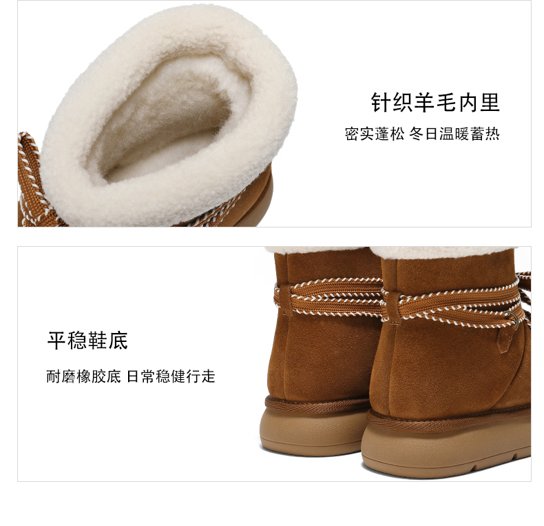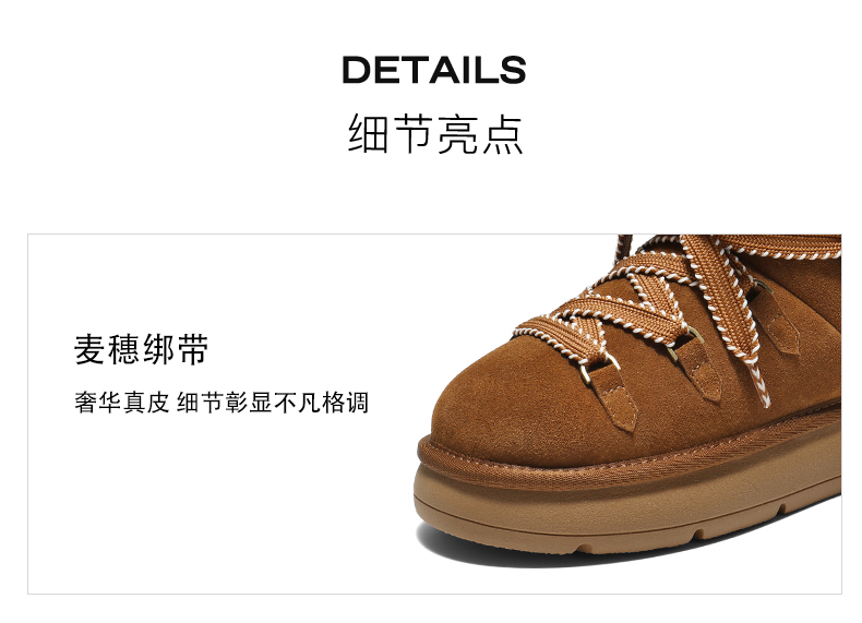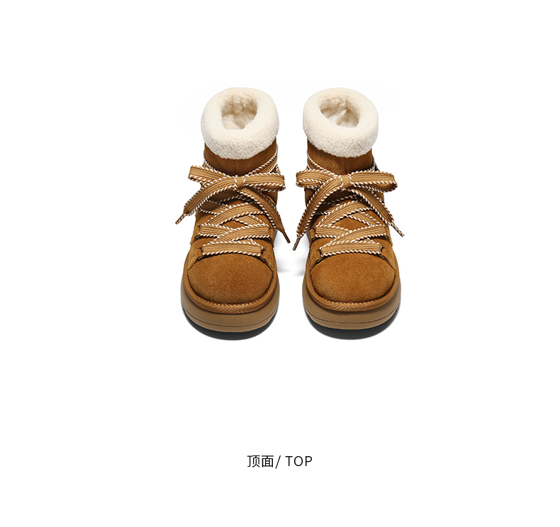帮面材质:牛剖层革 配跟:无 靴筒口围:33CM 上市时间:2025年冬季 鞋类流行款式:雪地靴
