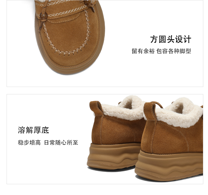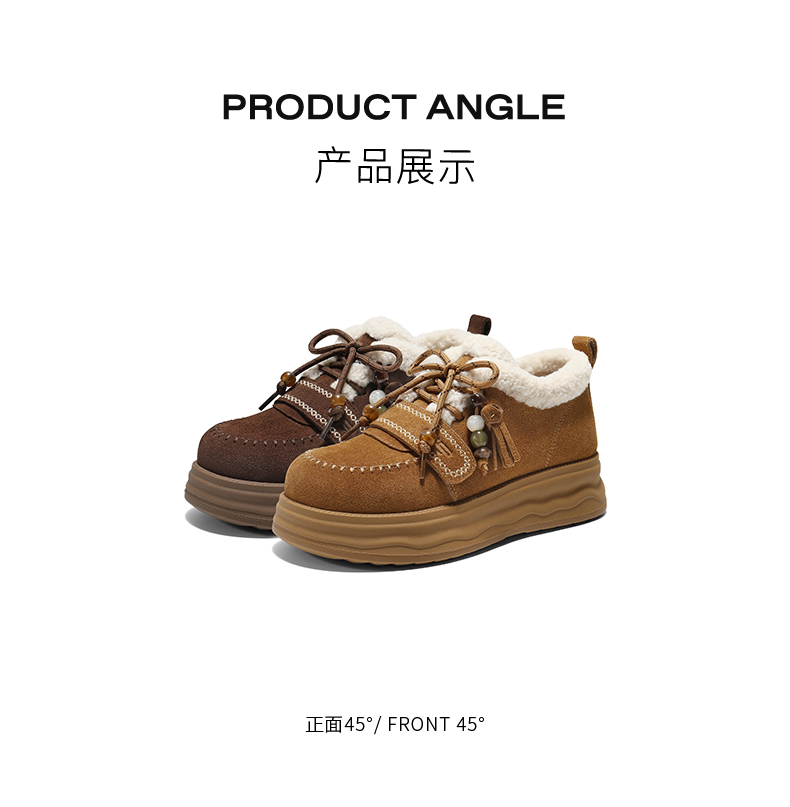 | 风格:休闲 | 鞋面内里材质:人造毛绒 | 色系:咖啡色 | 跟高数值:4.5CM | 适用人群:通用 |