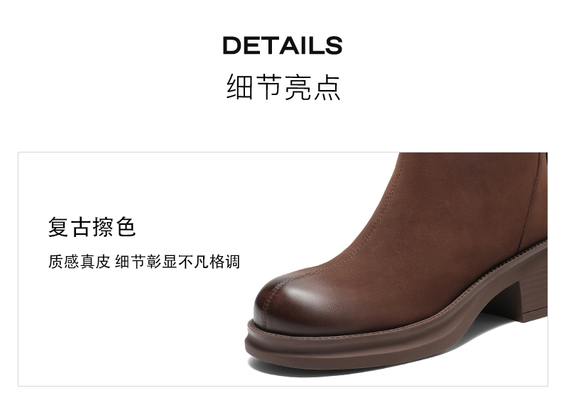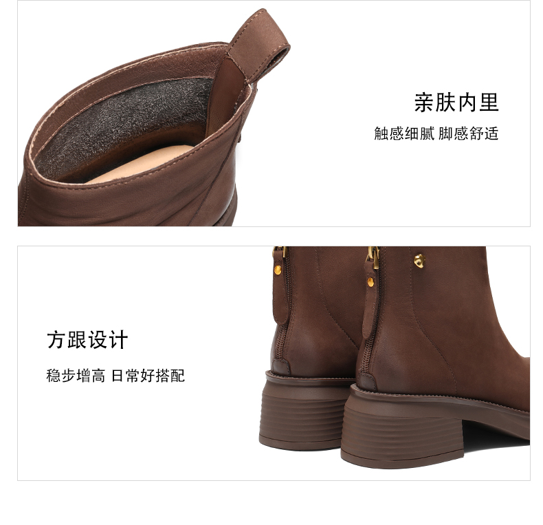 | 筒高数值:11.5CM | 性别:女子 | 靴筒筒面材质:牛皮革 | 里料材质:猪皮革织物 | 制鞋工艺:车线胶粘 |