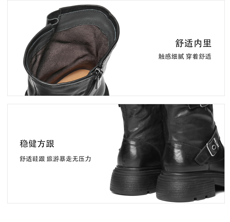 | 筒高数值:15CM | 性别:女子 | 靴筒筒面材质:牛皮革 | 里料材质:猪皮革织物 | 制鞋工艺:车线胶粘 |