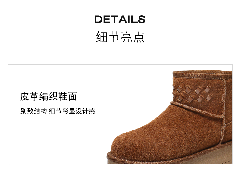 | 帮面材质:牛剖层革 | 配跟:无 | 靴筒口围:33CM | 上市时间:2025年冬季 | 鞋类流行款式:雪地靴 |