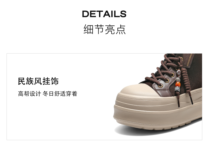 | 靴筒筒面材质:复合材料牛剖层革 | 里料材质:人造短毛绒 | 制鞋工艺:车线胶粘 | 鞋垫材质:人造短毛绒 | 款式季节:冬季 |