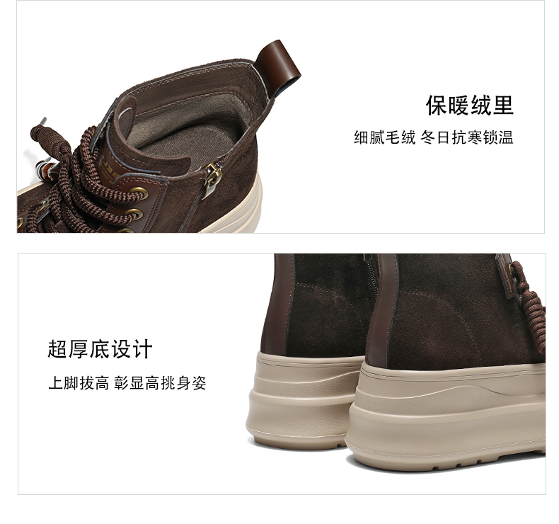 | 鞋底材质:发泡底 | 靴筒内里材质:人造短毛绒 | 内增高:无 | 鞋面材质:复合材料牛剖层革 | 闭合方式:系带 |