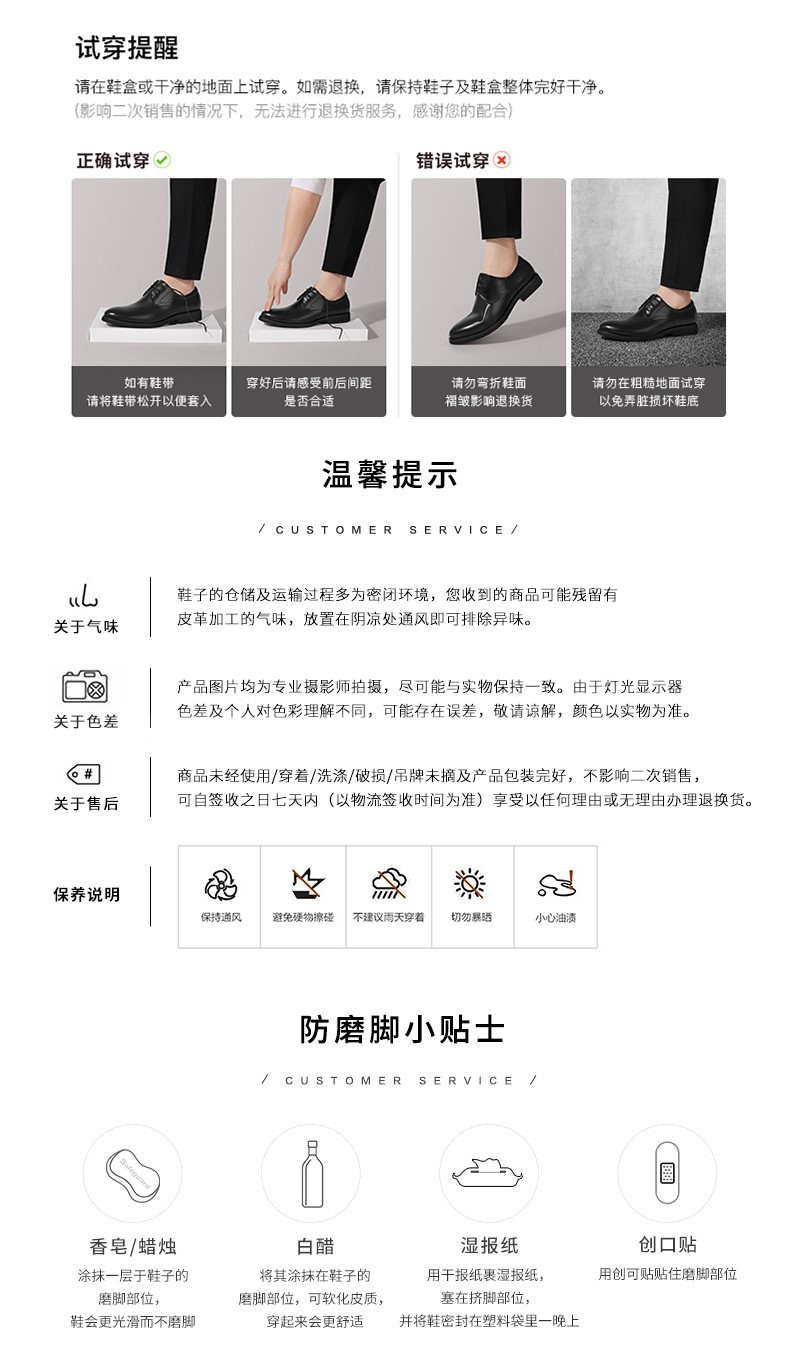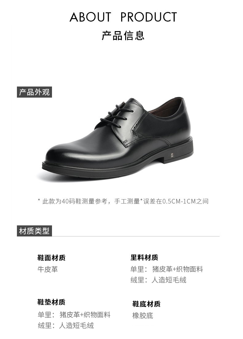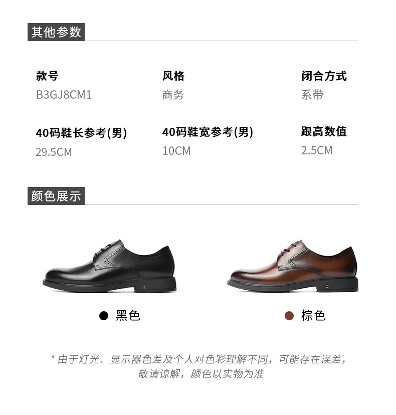 | 风格:商务 | 色系:黑色 | 跟高数值:2.5CM | 40码鞋宽参考(男):10CM | 性别:男子 |