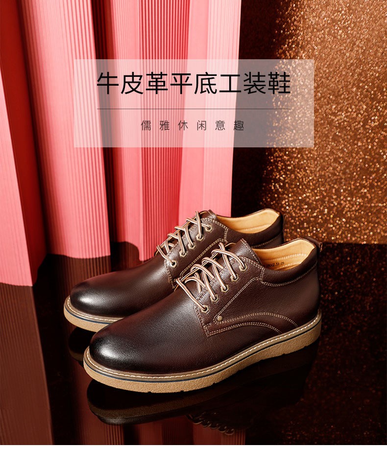 | 内增高:无 | 鞋跟形状:平跟 | 鞋面材质:牛皮革 | 流行元素:车缝线 | 闭合方式:系带 |