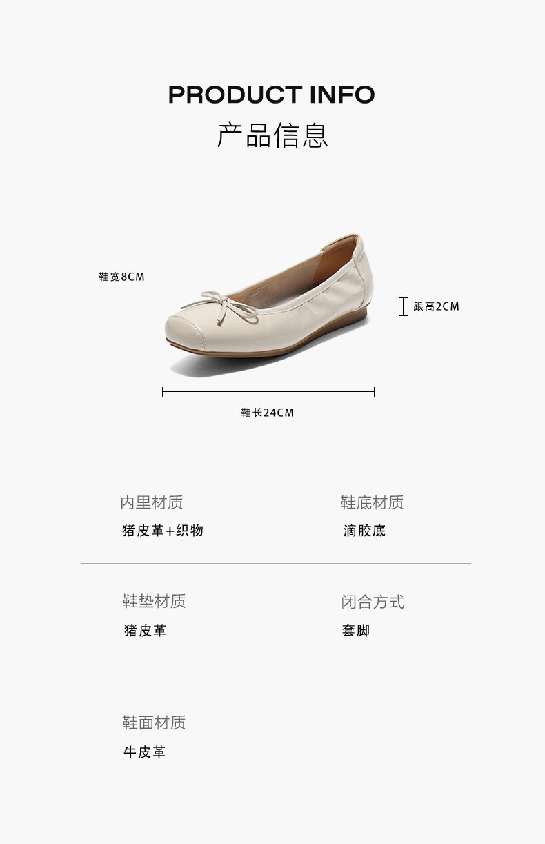 | 闭合方式:套脚 | 所在区域:电子商务 | 配跟:无 | 开口深度:浅口 | 风格分类:低平跟单鞋 |