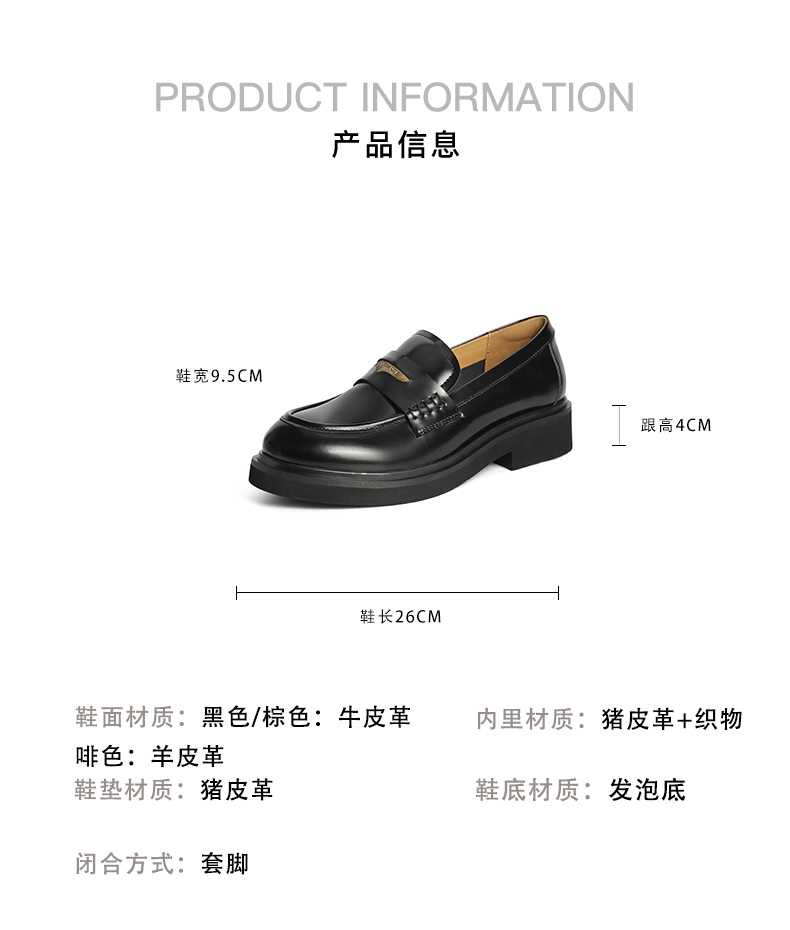 | 风格分类:便士乐福 | 上市时间:2024年秋季 | 生产/经销/进口厂家:百丽电子商务(上海)有限公司 | 鞋类流行款式:乐福鞋 | 鞋头款式:圆头 |