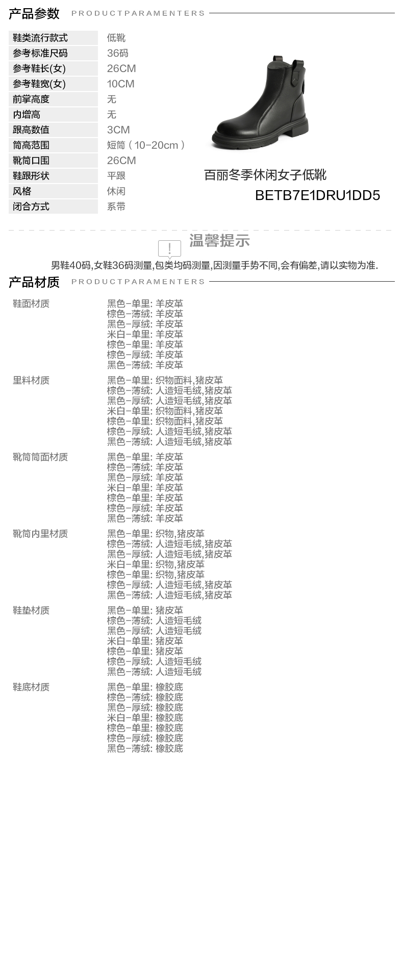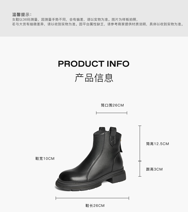 | 帮面材质:羊皮 | 配跟:无 | 靴筒口围:26CM | 上市时间:2025年冬季 | 鞋类流行款式:低靴 |