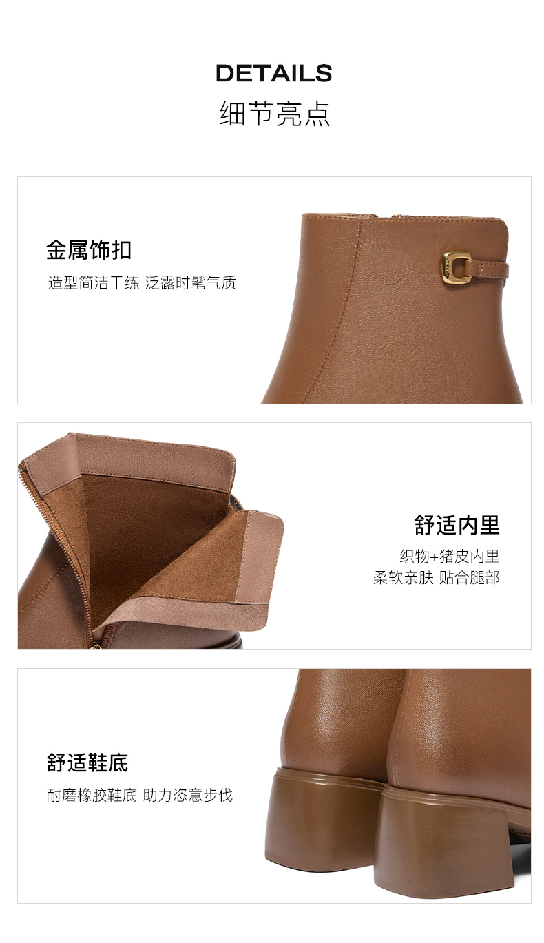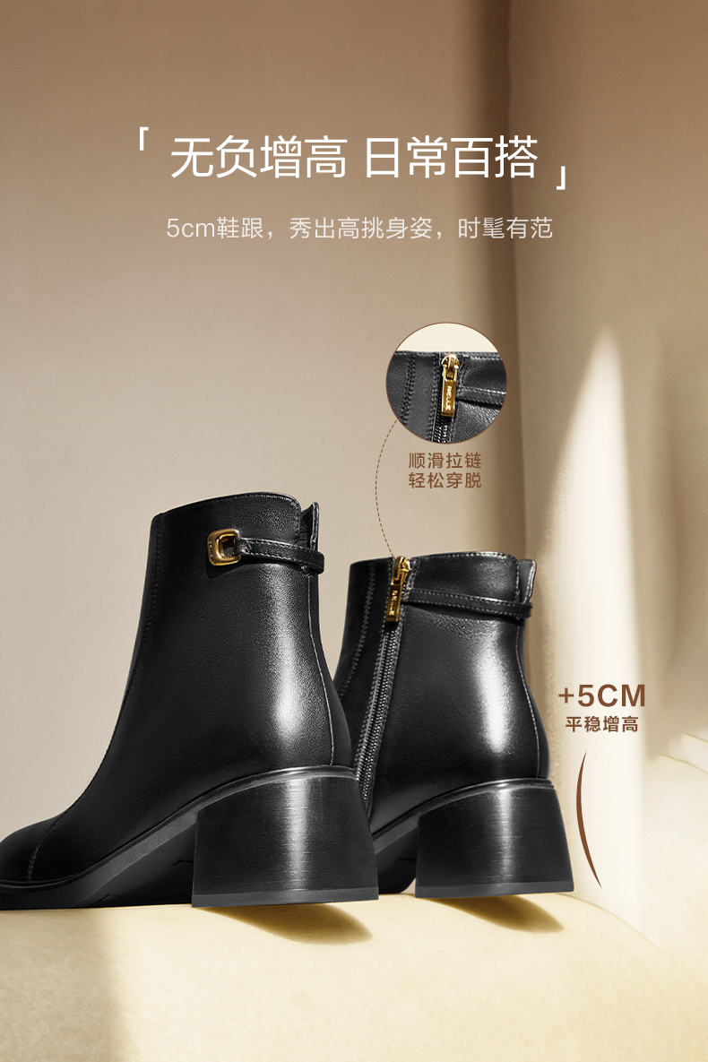 | 鞋底材质:橡胶底 | 靴筒内里材质:猪皮革织物 | 内增高:无 | 鞋面材质:羊皮革 | 闭合方式:后拉链 |
