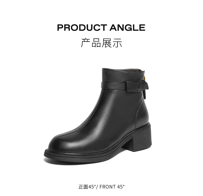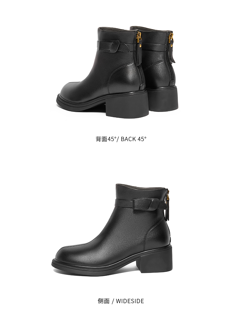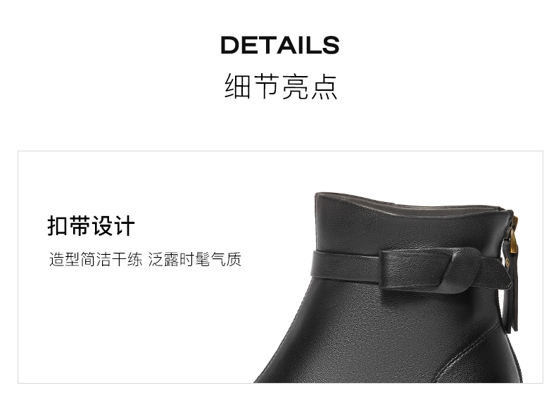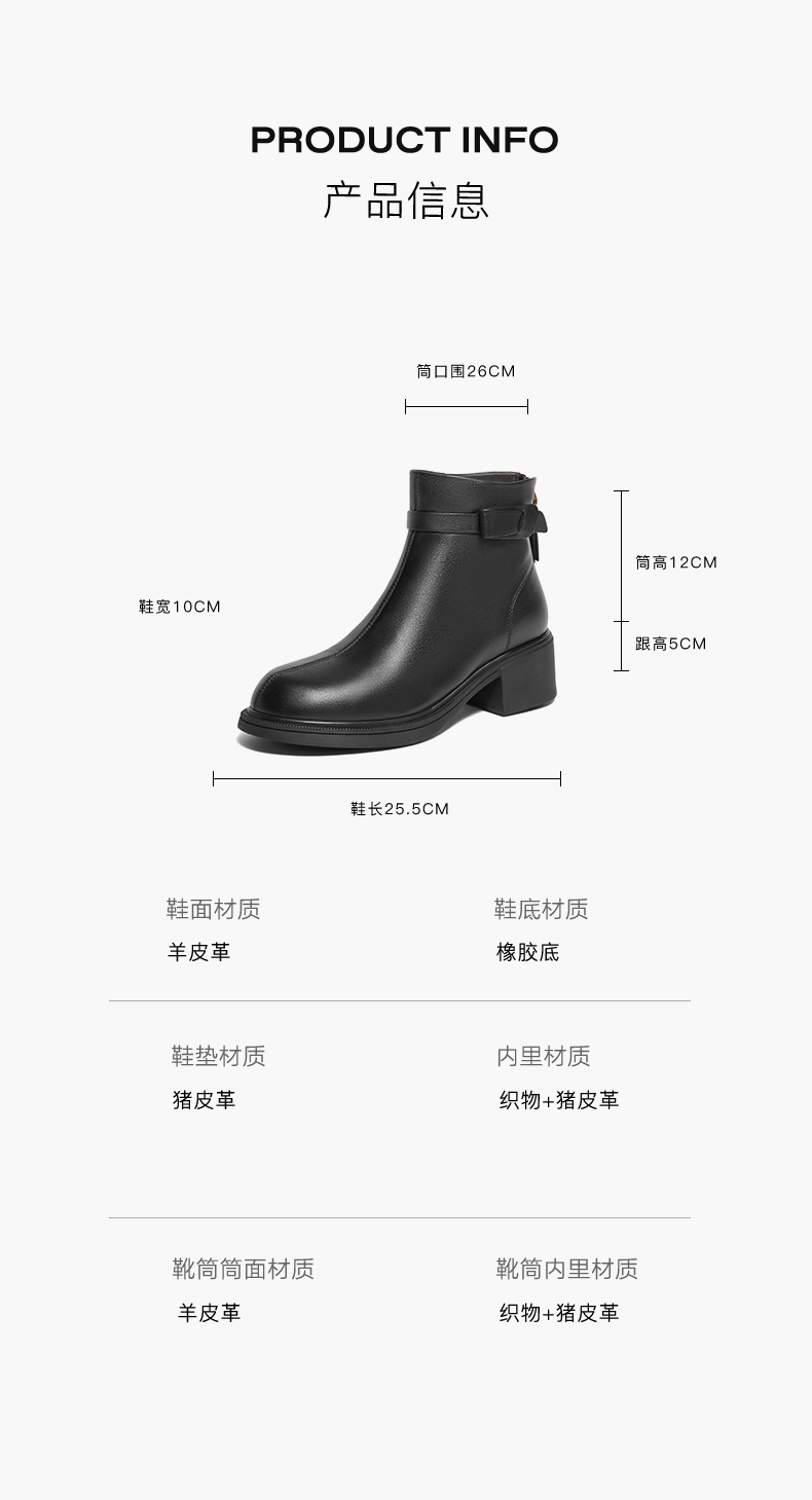 | 鞋类流行款式:时装靴 | 鞋头款式:圆头 | 执行标准:舒适上班鞋Q/LR001-2023若与实物产生差异,请以实物标签为准 | 跟高范围:中跟鞋(3-5CM) | 鞋面图案:纯色 |