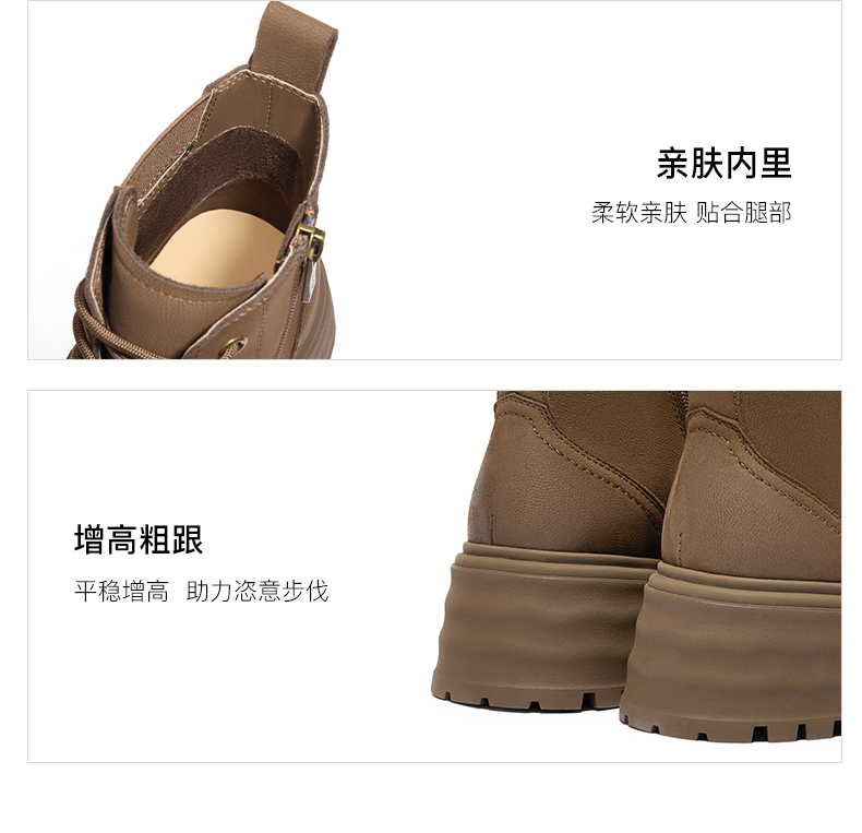 | 鞋类流行款式:马丁靴 | 鞋头款式:圆头 | 执行标准:舒适上班鞋Q/LR001-2023若与实物产生差异,请以实物标签为准 | 跟高范围:高跟鞋(6-8CM) | 鞋面图案:纯色 |