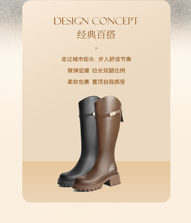 | 风格:休闲 | 色系:棕色 | 跟高数值:6CM | 性别:女子 | 筒高数值:38CM |
