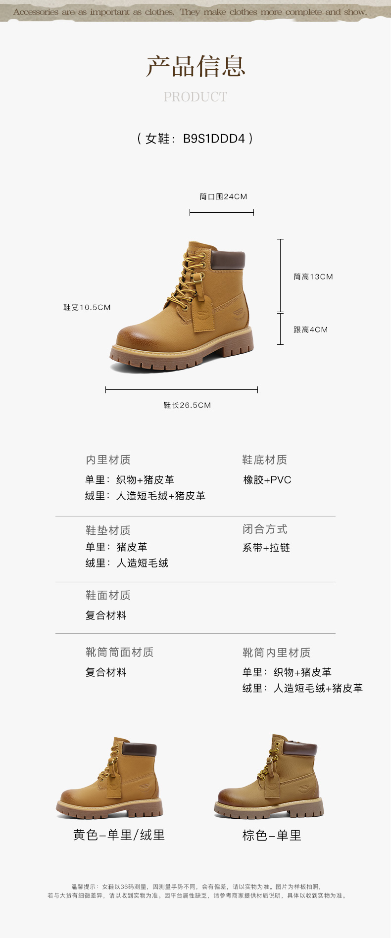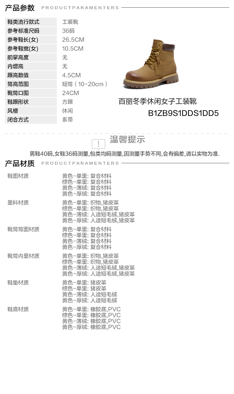 | 帮面材质:复合材料 | 配跟:无 | 靴筒口围:24CM | 上市时间:2025年冬季 | 鞋类流行款式:工装靴 |
